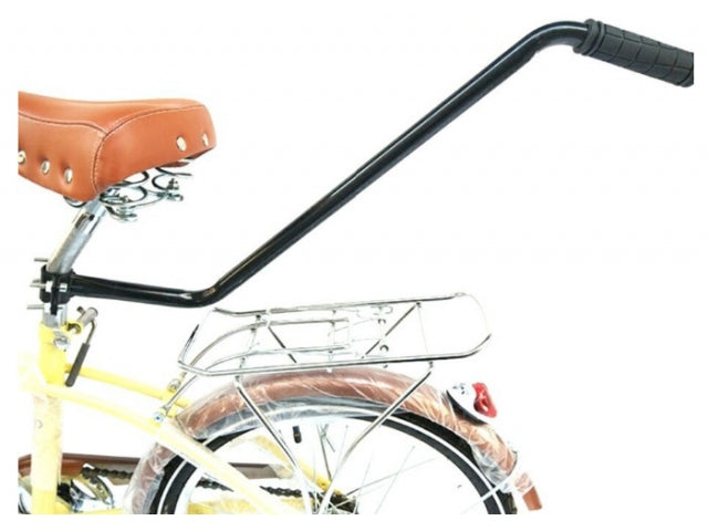 Produsul este fabricat din otel de inalta calitate, extrem de rezistent la socuri si uzura, ceea ce ii asigura o durata lunga de viata. Lungimea de 60 cm a barei ofera parintelui suficient spatiu pentru a manevra bicicleta fara a incomoda copilul, dar si pentru a interveni prompt atunci cand acesta are nevoie de ajutor pentru a-si mentine echilibrul. Manerul ergonomic cu suprafata antiderapanta din cauciuc permite o prindere ferma si confortabila, chiar si pe distante mai mari, astfel incat parintele sa poata insoti copilul fara efort suplimentar.