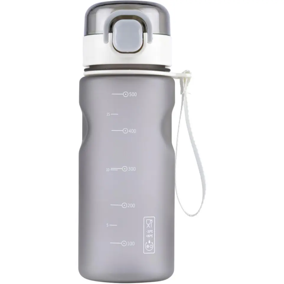 Sticla de apa cu scala temporala, Zola, fara BPA, sistem de blocare capac, 600 ml, maner, reutilizabila, PVC, lavabila in masina de spalat, rezistenta la socuri, gri