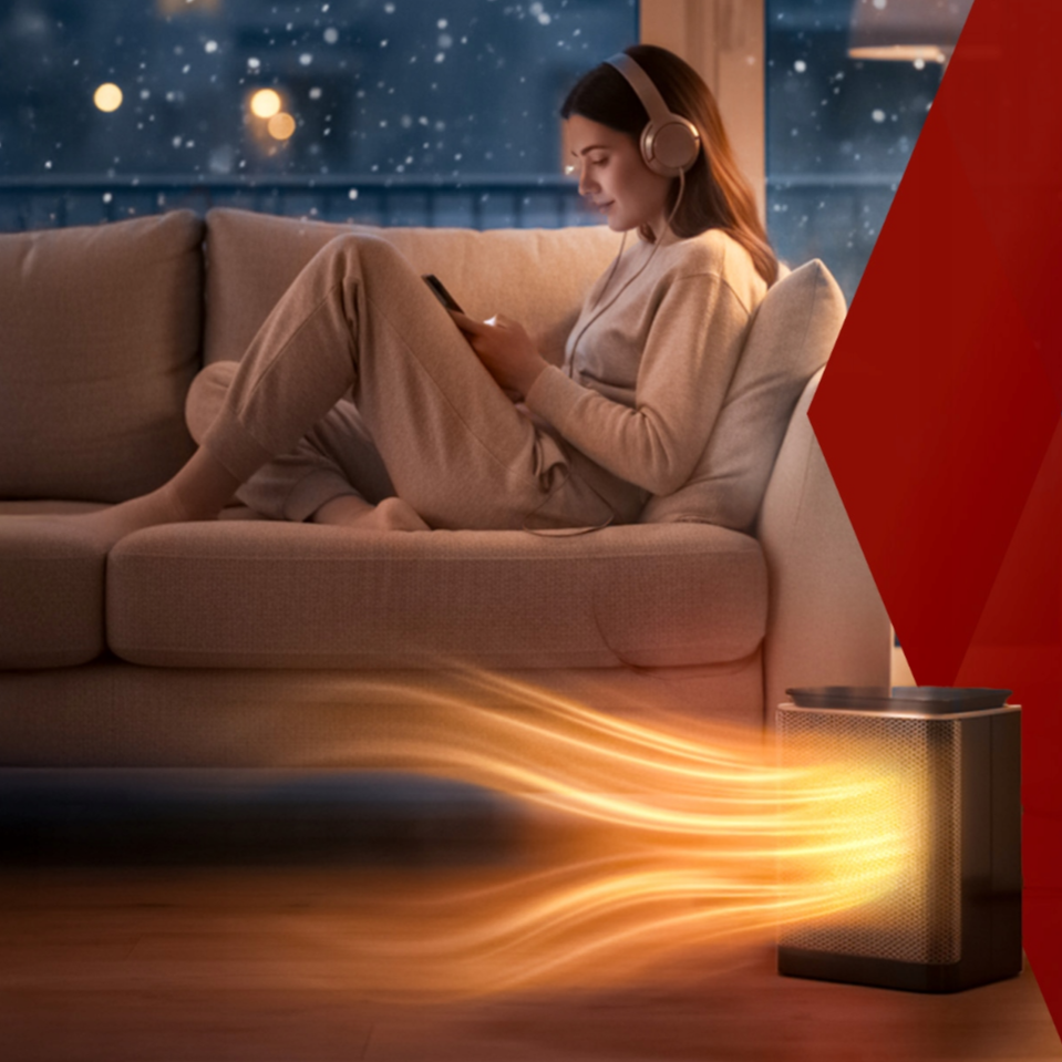 Incalzire rapida si uniforma – elementul ceramic PTC genereaza caldura in cateva secunde, distribuind uniform aerul cald in incapere. Datorita functiei de oscilație cu unghi larg, aerul cald este directionat in toate zonele camerei, eliminand punctele reci si mentinand o temperatura constanta si placuta.