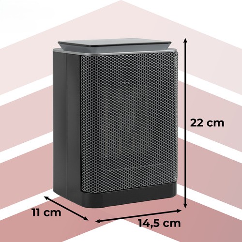 Materiale rezistente si sigure – carcasa este fabricata din ABS durabil si fier, rezistente la temperaturi inalte si uzura. Designul compact (45 x 20 x 20 cm) permite pozitionarea aerotermei in spatii mici, iar greutatea redusa (1.25 kg) faciliteaza transportul si depozitarea.