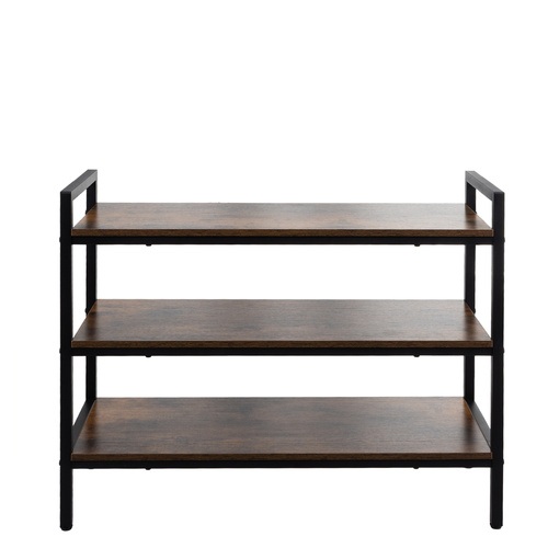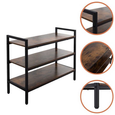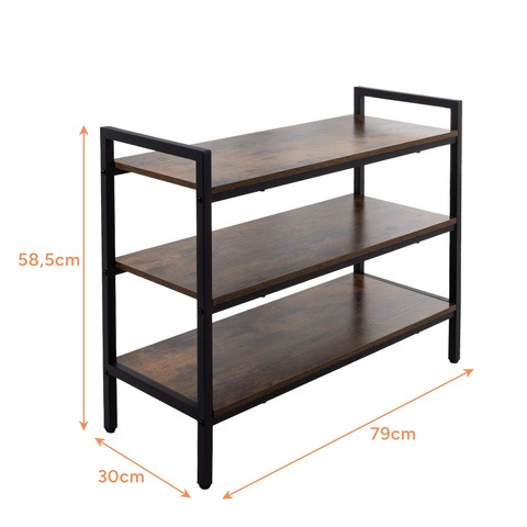 Pantofar modern stil industrial, Zola, 3 rafturi incaltaminte, greutate suportata 30 kg, 58.5 x 79 x 30 cm, cadru metalic, MDF, negru/maro