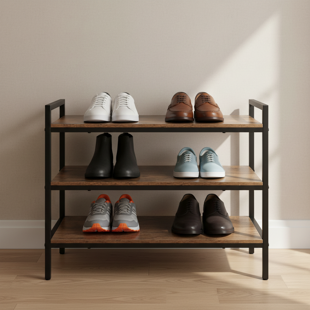 Acest pantofar oferita ordine instantanee, acces rapid la incaltaminte si stabilitate impecabila. Fiecare raft este proiectat sa sustina pana la 30 kg, astfel incat poate depozita pantofi sport, pantofi casual, ghete sau accesorii. Aspectul industrial modern se imbina perfect cu rezistenta materialelor, iar picioarele protejate cu tampoane antiderapante mentin pardoseala in siguranta.