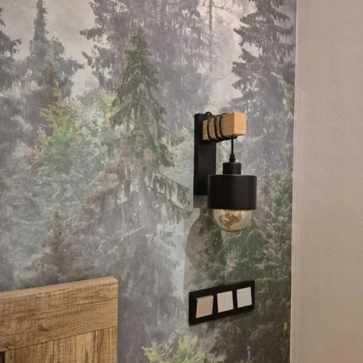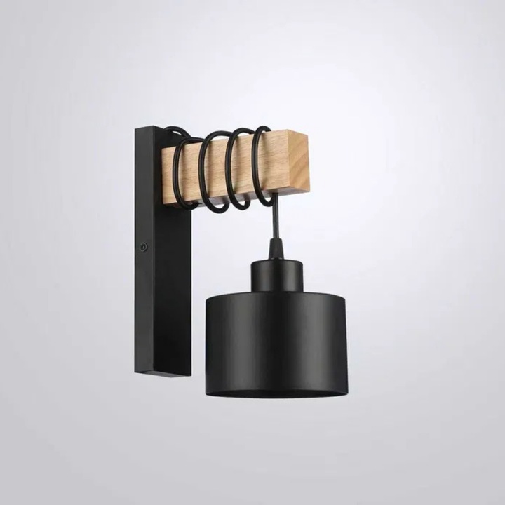 Aplica de perete stil loft din otel si lemn este o solutie de iluminat moderna si eleganta, conceputa pentru a aduce un plus de stil si functionalitate oricarui spatiu interior. Combinatia dintre lemnul natural si otelul negru mat creeaza un contrast placut, potrivit atat pentru interioare de tip loft, cat si pentru amenajari moderne sau scandinave. Este ideala ca sursa de lumina ambientala sau functionala, dar si ca element decorativ care atrage atentia prin designul sau simplu si echilibrat.