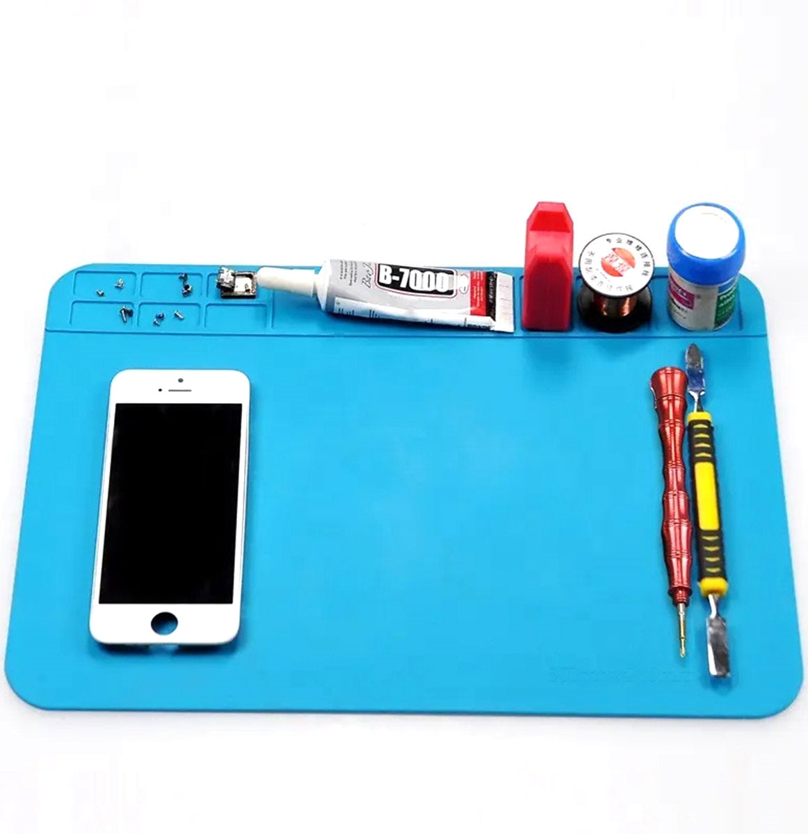 - Utilitate Multifunctionala: Covorasul de serviciu din silicon este ideal pentru efectuarea reparatiilor si lipirii electronice, oferind un spatiu de lucru stabil si antistatic.
