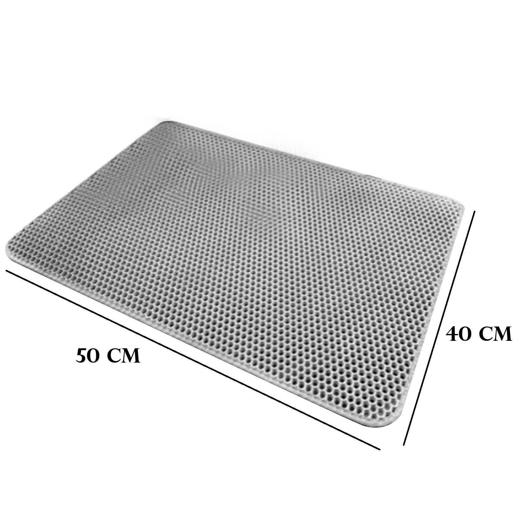Covoras pentru litiera pisicilor, Zola, dublu, cauciuc/spuma EVA, 40 x 50 cm, gri