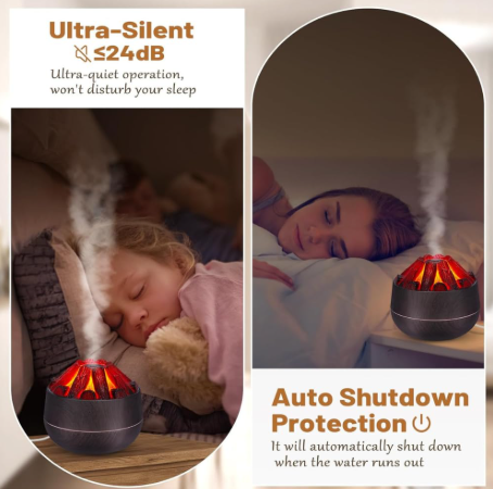 Design unic cu efect vizual de vulcan – datorita sistemului LED inteligent, aburul eliberat este iluminat in mod spectaculos, imitand eruptia unui vulcan miniatural. Aceasta functie creeaza o atmosfera relaxanta si spectaculoasa, perfecta pentru momentele de relaxare, meditatie sau aromaterapie.