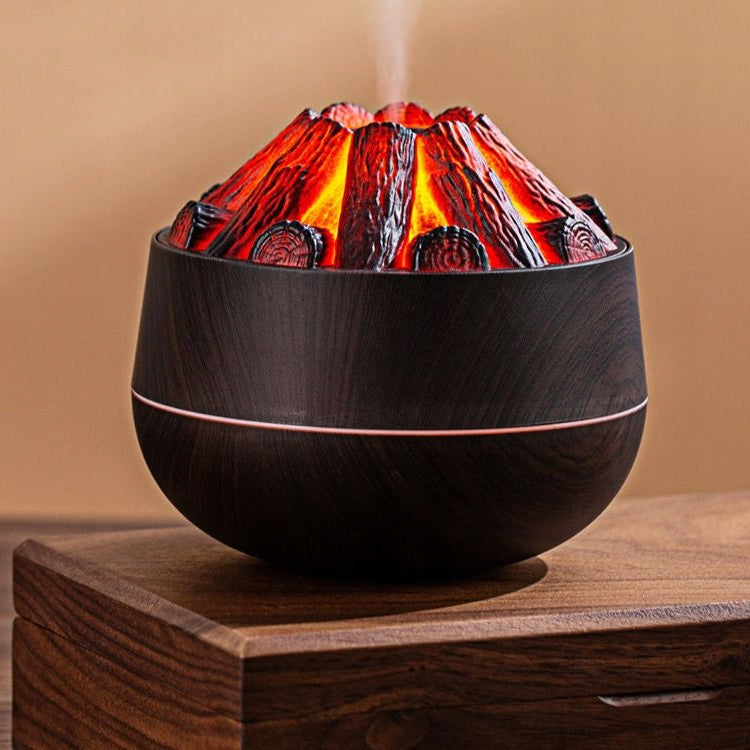 Difuzor de arome LED, Zola, efect vulcan, 2 moduri functionare, 30-50 ml/h, rezervor 300 ml, USB, 11.5 cm x 10.5 cm, lemn maro inchis