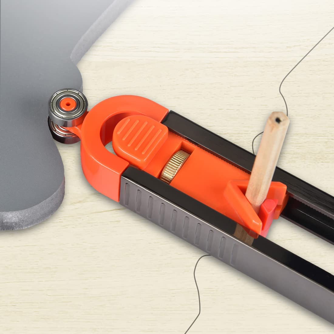 Rigla de precizie pentru trasarea si marcarea liniilor. Indicatorul de contur va permite sa urmariti cu precizie (inclusiv forme neregulate) pe orice suprafata. Doar fixati creionul in gaura si setati distanta dorita pentru a incepe sa desenati linii (produsul nu deterioreaza suprafata).