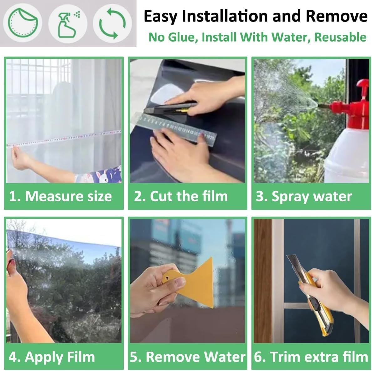 Folia se aplica pe geam folosind apa sau solutie speciala pentru montaj, pentru a permite pozitionarea corecta