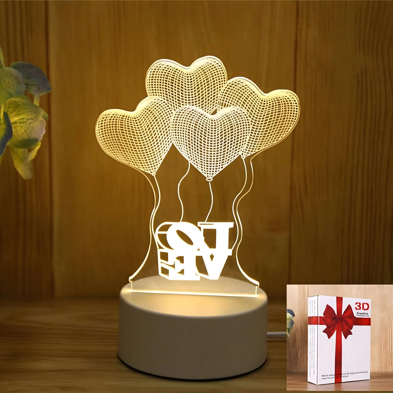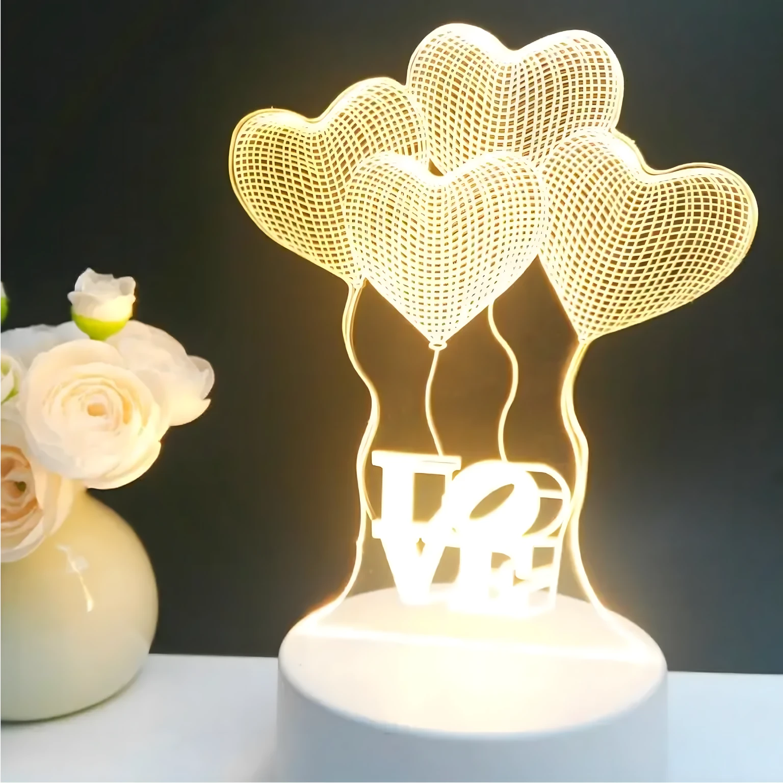 Lampa LED 3D pentru noptiera cu inimioare este un obiect decorativ modern si practic, conceput pentru a crea o atmosfera calda, relaxanta si romantica in orice incapere. Efectul vizual 3D in forma de inima ofera un impact estetic placut, iar lumina alb cald este ideala pentru utilizare pe timp de noapte, fara a deranja ochii. Este potrivita atat pentru copii, cat si pentru adulti, fiind usor de integrat in dormitor, living, birou sau camera copiilor.