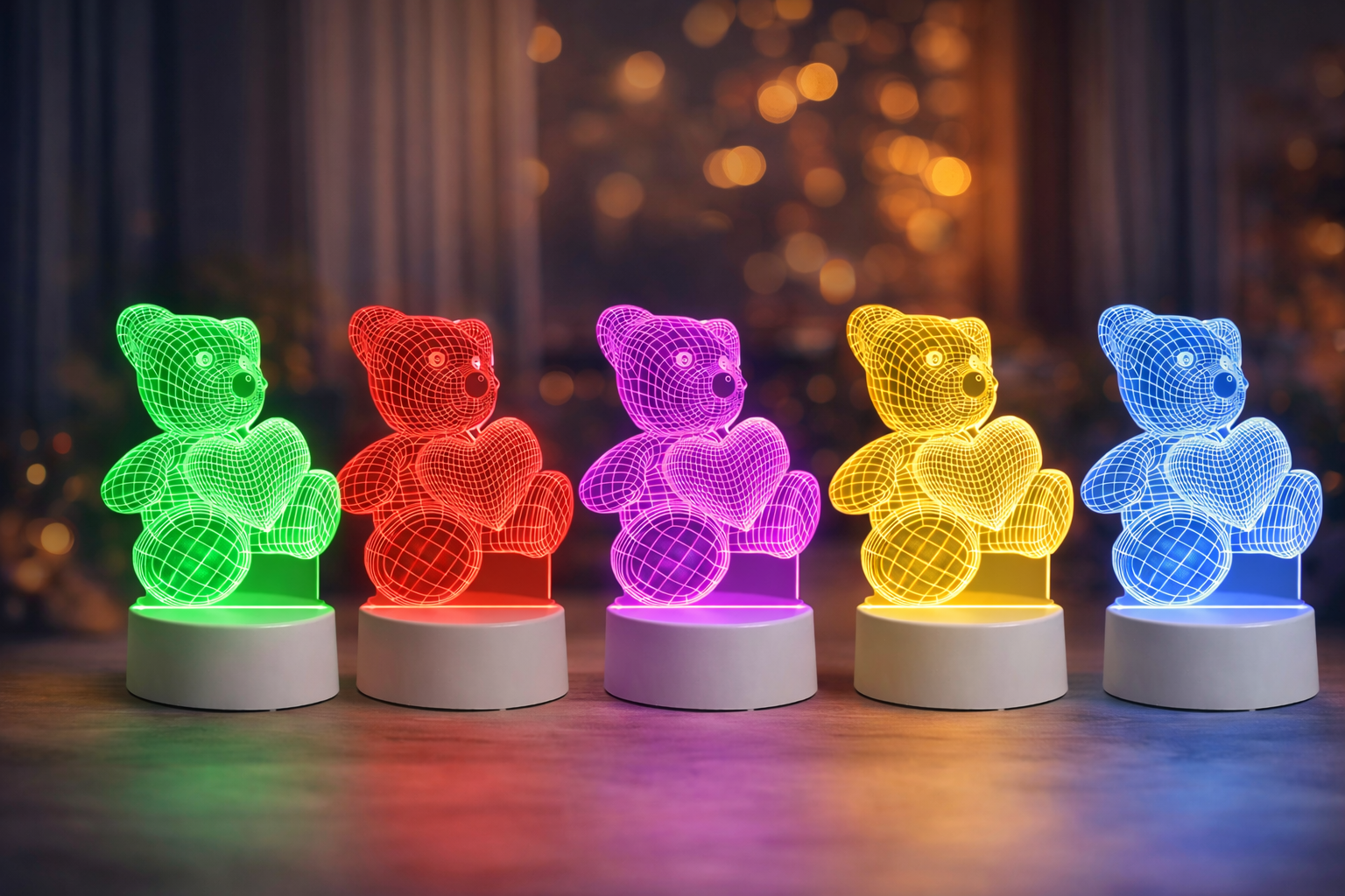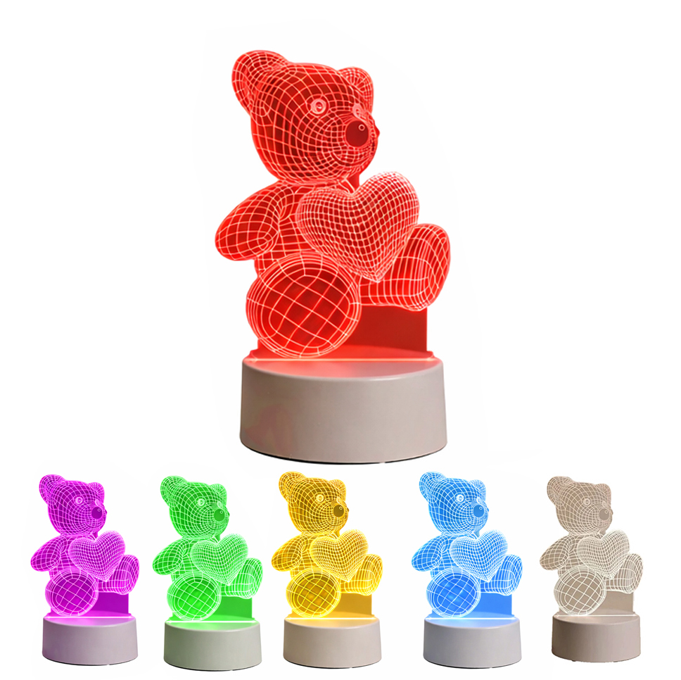 Lampa LED 3D pentru noptiera cu design de ursulet cu inima este o alegere inspirata pentru a crea o atmosfera calda, linistitoare si prietenoasa in orice incapere. Datorita efectului vizual tridimensional, lampa atrage imediat atentia si transforma orice spatiu intr-un loc mai placut, fiind ideala atat pentru camera copiilor, cat si pentru dormitor, birou sau living. Iluminarea LED RGB permite crearea diferitelor stari de ambient, transformand orice incapere intr-un spatiu primitor si personalizat.