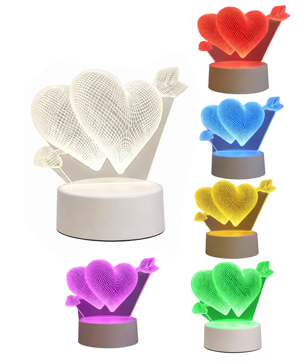 Aceasta lampa LED RGB 3D cu inimi cupidon imbina designul atragator cu functionalitatea practica, oferind iluminare decorativa cu schimbare de culori si control tactil, usor de integrat in orice locuinta.