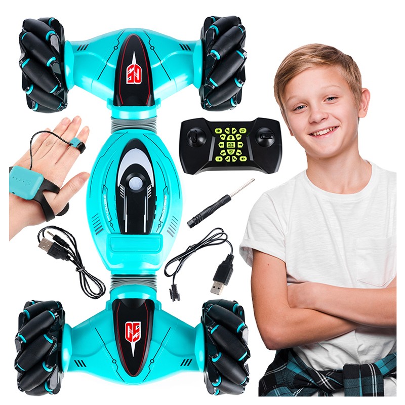 Masinuta Zola este echipata cu doua moduri de control – telecomanda clasica si bratara inteligenta pentru control prin gesturi. Miscarile mainii tale dirijeaza masina in toate directiile, transformand joaca intr-o experienta interactiva si dinamica. Poti efectua drifturi spectaculoase, intoarceri rapide si chiar cascadorii 360°, totul cu o simpla miscare a incheieturii.