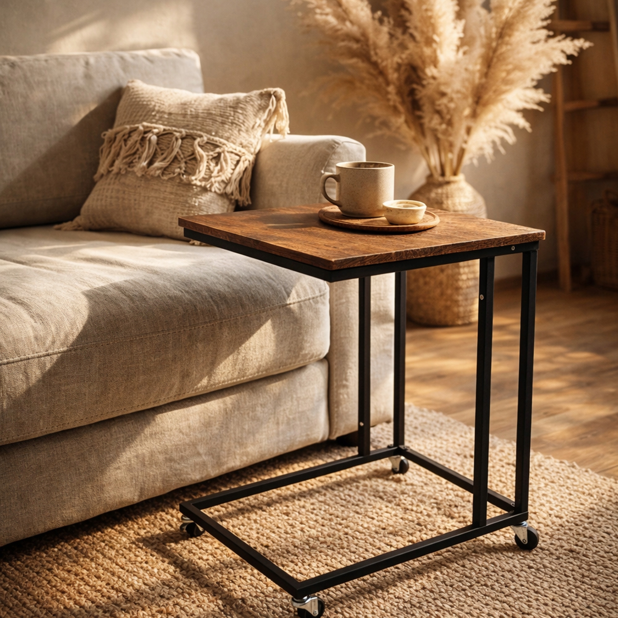 Aceasta masuta de cafea pe roti este ideala pentru apartamente, garsoniere sau spatii moderne unde eficienta si functionalitatea sunt esentiale. Permite economisirea timpului si a spatiului, oferind in acelasi timp confort atunci cand lucrezi pe laptop, servesti cafeaua sau citesti.