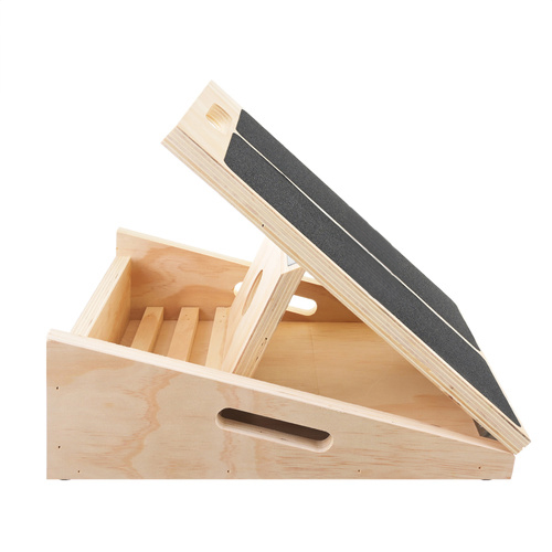 Platforma de antrenament pentru intindere, Zola, reglare 5 trepte, 15-35°, antiderapanta, greutate suportata 150 kg, plan antrenament, manere transport, din lemn, 39 x 30 x 14.5-30 cm