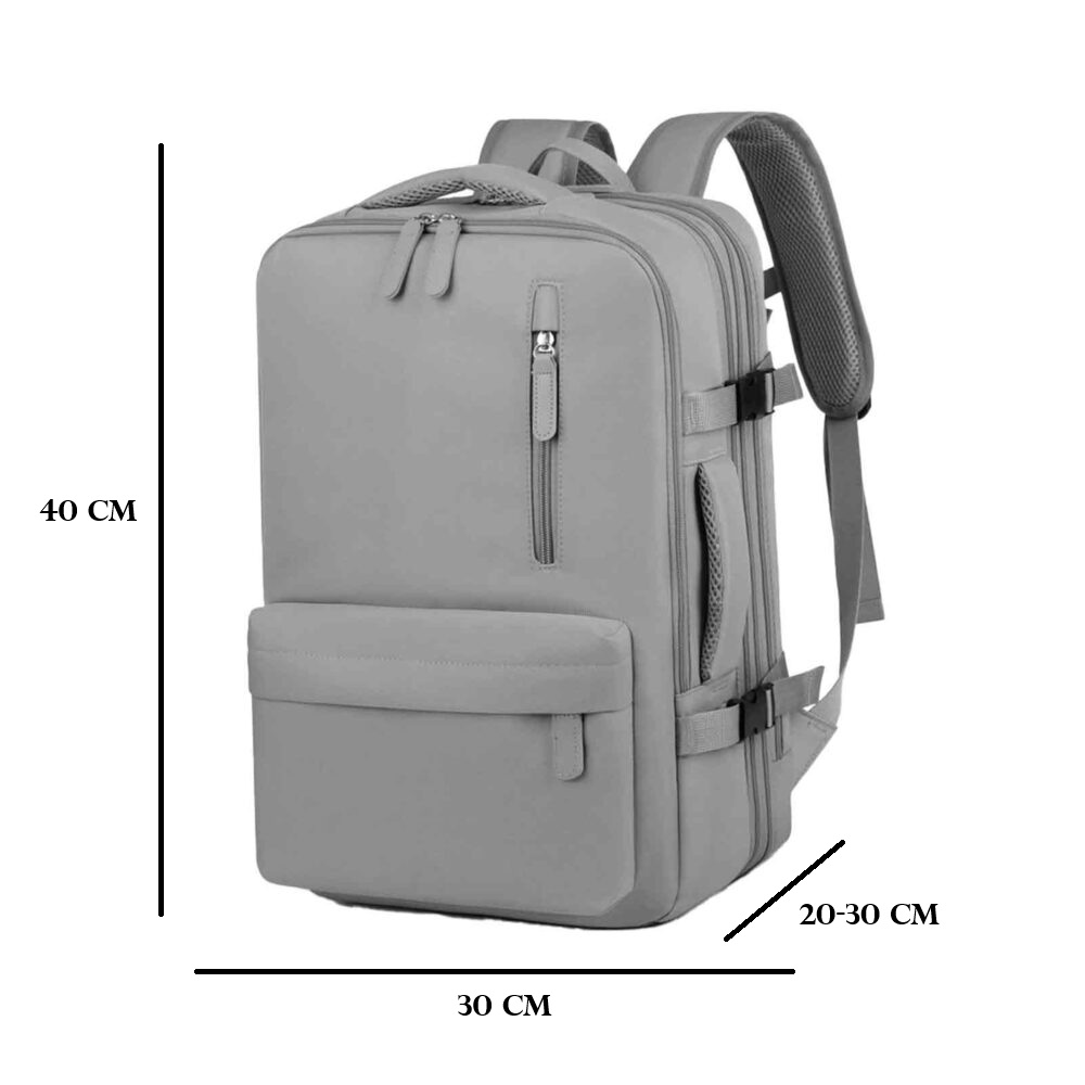 Acest rucsac modern si versatil este gandit special pentru calatorii cu avionul, excursii, utilizare zilnica si escapade de weekend. Prin combinarea materialelor rezistente cu un design inteligent si o capacitate ajustabila, rucsacul ofera libertate de miscare, siguranta pentru obiectele tale si confort maxim. Datorita dimensiunilor precise si a compartimentelor bine structurate, este alegerea ideala pentru cei care calatoresc des si au nevoie de un bagaj compact, organizat si sigur.