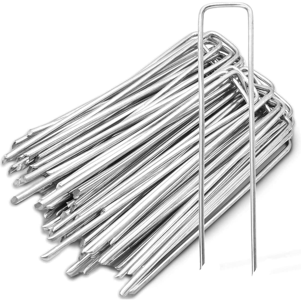 Setul de 50 cuie pentru fixare agrotextil este un accesoriu practic si necesar pentru orice lucrare de gradina, solarii, amenajari exterioare sau fixare a materialelor de protectie la sol. Realizate din otel galvanizat, aceste cuie in forma de U ofera o prindere stabila, rezistenta si sigura, fiind ideale pentru fixarea rapida a agrotextilului, foliei, plaselor sau altor materiale utilizate in exterior.