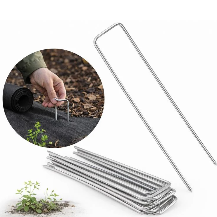Datorita constructiei solide si finisajului galvanizat, produsul este conceput pentru utilizare indelungata, chiar si in conditii dificile de umiditate sau contact frecvent cu solul. Forma speciala in U permite o ancorare eficienta in pamant, ceea ce ajuta la mentinerea materialului bine intins si corect pozitionat.