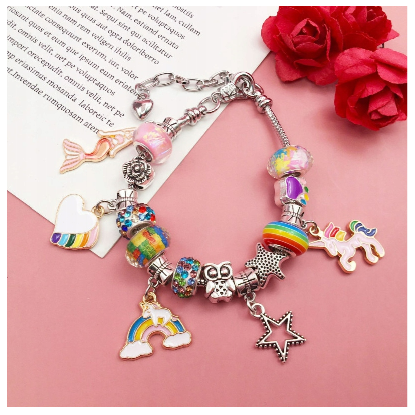 Montaj simplu si rapid – doar desurubezi capatul bratarii sau colierului, insiri margelele si charmurile preferate, apoi insurubezi din nou capatul. Procesul este intuitiv si sigur chiar si pentru copii.