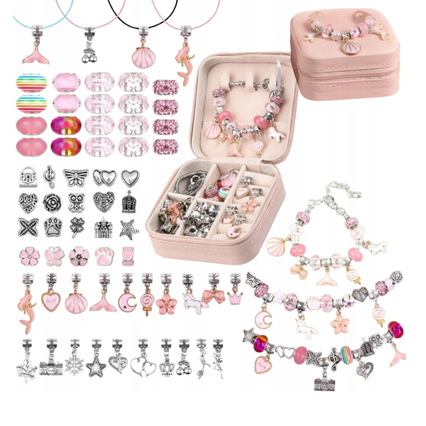 Setul contine 66 de elemente diferite, atent selectionate pentru a permite combinatii nelimitate si rezultate spectaculoase. Datorita designului practic si al sistemului usor de asamblare, oricine poate crea bijuterii frumoase in doar cateva minute, fara a fi nevoie de experienta anterioara.