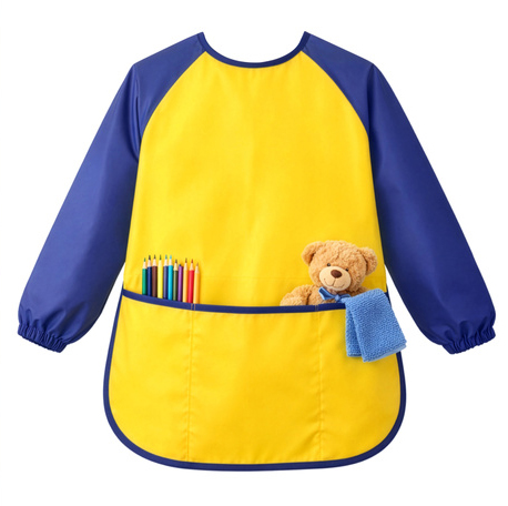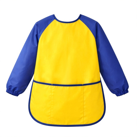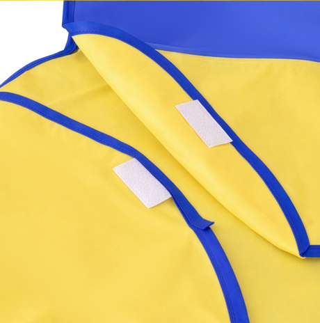 Sort impermeabil pentru pictura si activitati creative, Zola, marimea S, buzunar, mansete elastice, 55 x 40 cm, maneca 44 cm, galben/albastru