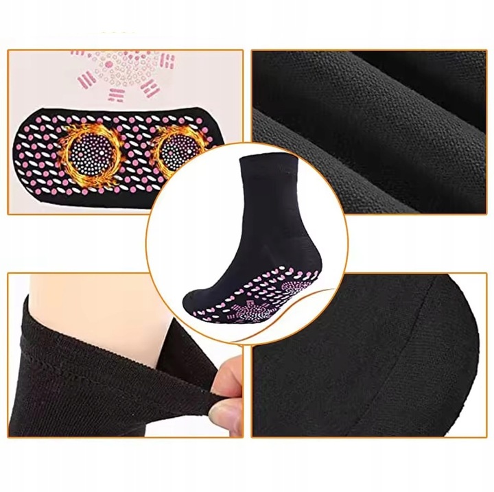 Pur si simplu incaltati sosetele direct pe piele. Materialul contine particule de turmalina, un mineral care reactioneaza la caldura corpului si produce un efect termic bland, crescand confortul termic in mod natural. Se recomanda purtarea lor timp de cel putin 10–15 minute pentru a simti efectul complet al incalzirii. Pot fi utilizate zilnic, acasa sau in exterior, fara riscul de supraincalzire.