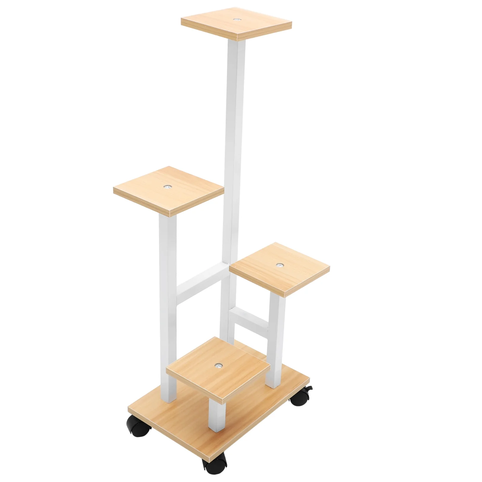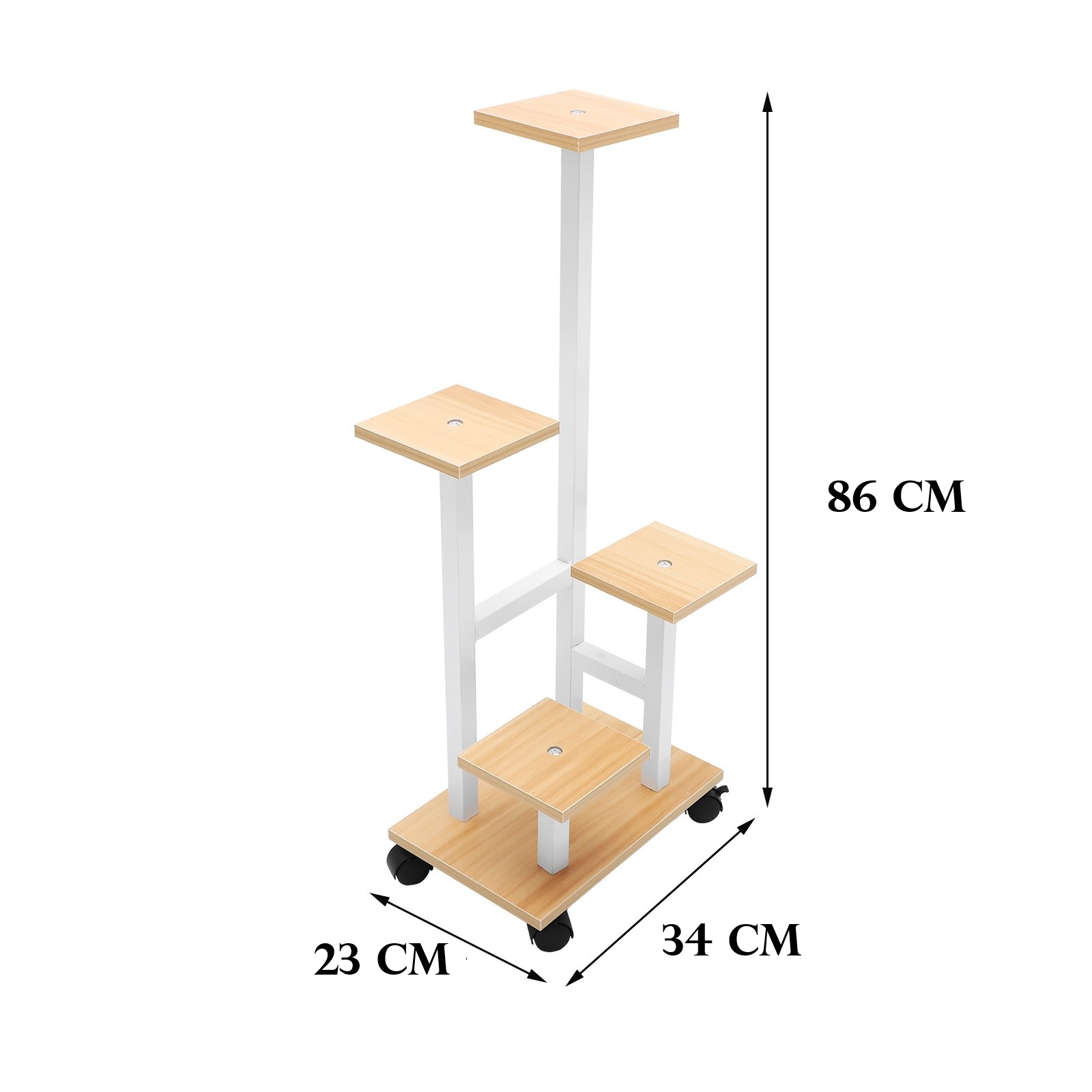 Suport pentru ghivece de flori, Zola, 4 polite, roti pivotante, metal/PAL, 34x23x86 cm, alb/bej