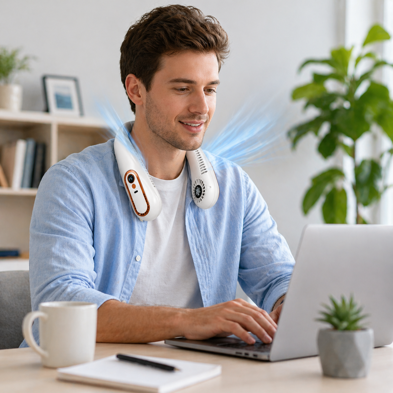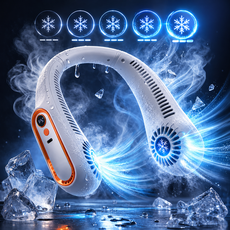 Acest ventilator portabil se poarta confortabil in jurul gatului si functioneaza wireless, fiind usor de folosit oriunde ai nevoie de racorire. Datorita celor 5 trepte de viteza, a bratelor flexibile, a afisajului LED si a incarcarii prin USB-C, produsul este practic, modern si usor de adaptat in functie de temperatura si activitate.