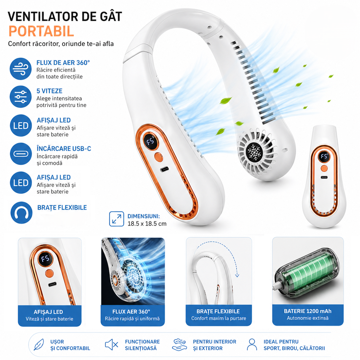 - Tip produs: ventilator de gat portabil