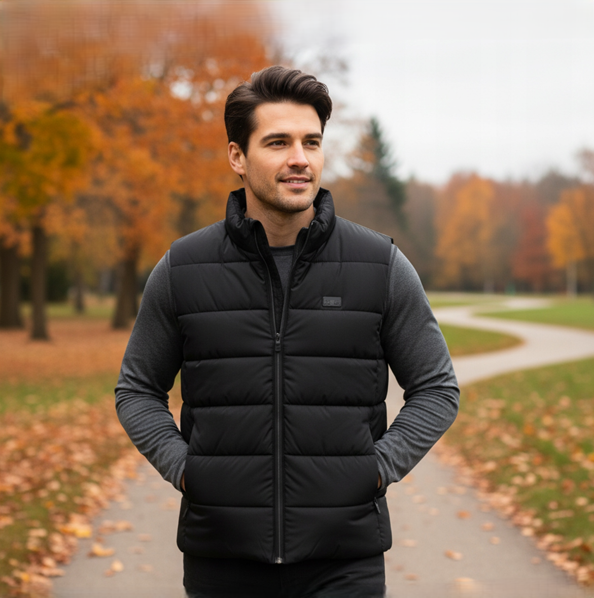 Fabricata din material matlasat premium si fibre de carbon, vesta asigura eficienta maxima de incalzire si o durabilitate crescuta. Materialul este usor, placut la atingere si rezistent la vant, oferind protectie excelenta impotriva frigului. Designul slim fit asigura o potrivire perfecta, fara a limita miscarea, iar gulerul inalt captusit protejeaza suplimentar zona gatului impotriva vantului rece.