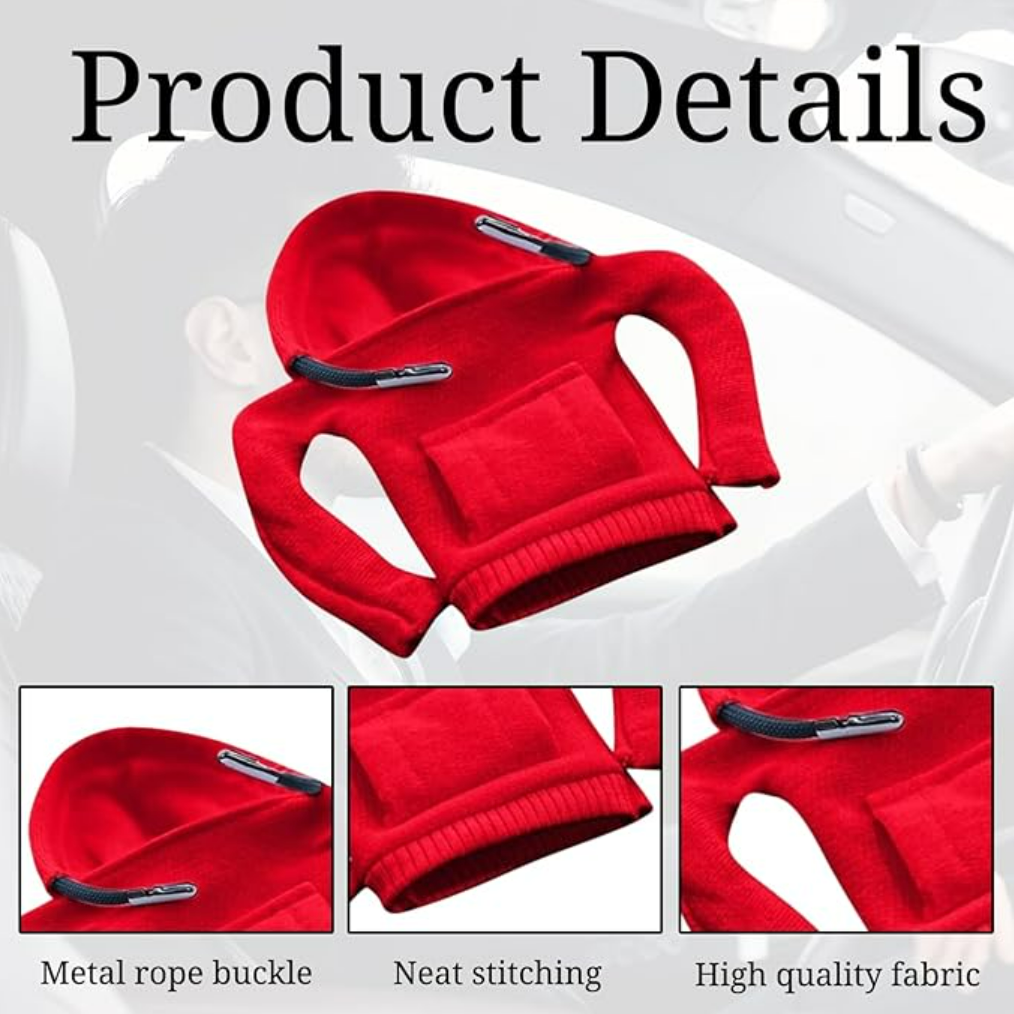 Modelul reproduce fidel un hanorac in miniatura, complet cu gluga, snur decorativ si maneci false, oferind un efect vizual realist si inedit. Designul sau compact este compatibil cu majoritatea schimbatoarelor de viteze standard, atat pentru transmisii manuale, cat si automate, datorita sistemului universal de fixare. Se monteaza rapid si usor – pur si simplu se trage peste capul schimbatorului, iar elasticul interior asigura o fixare ferma fara a fi nevoie de alte accesorii.