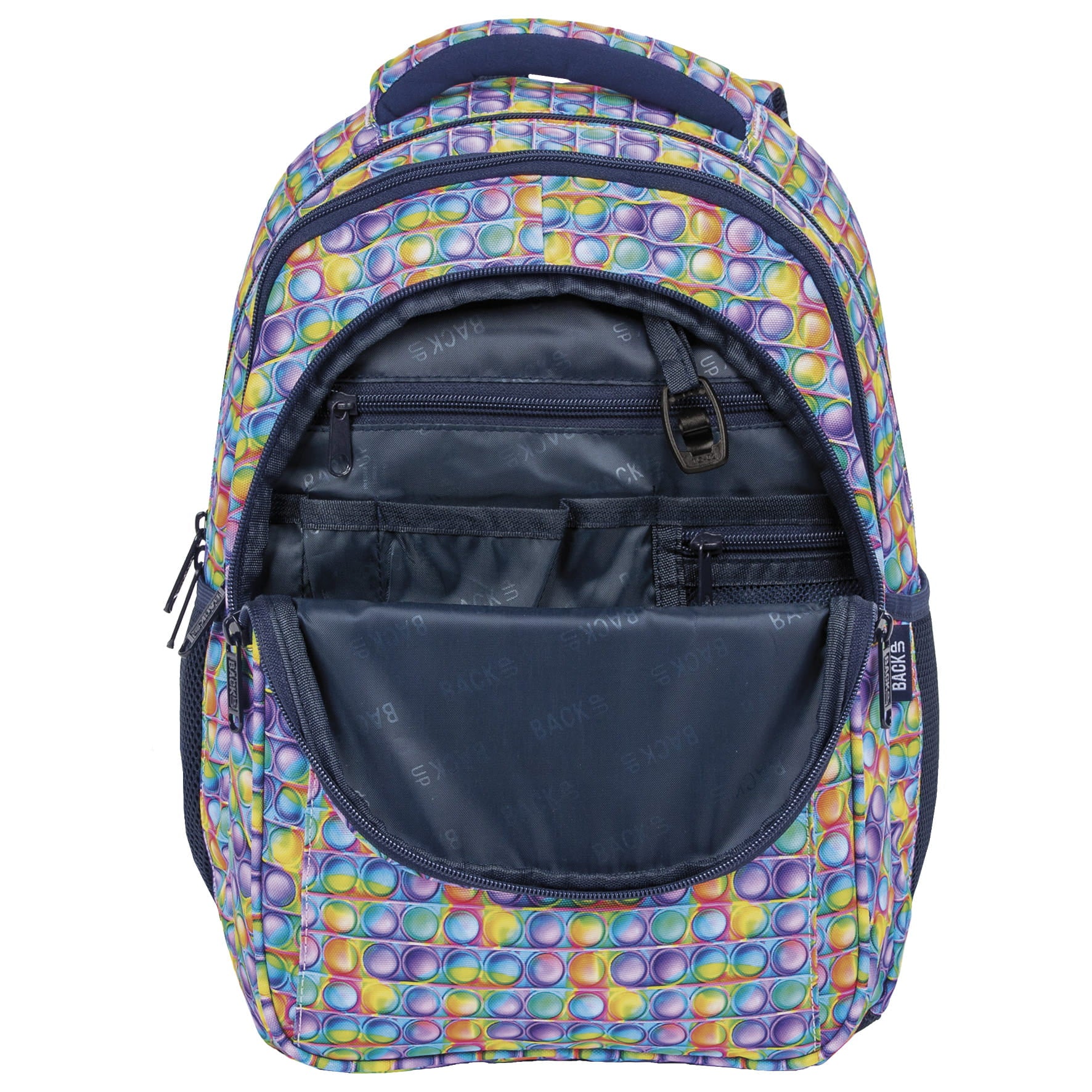 Ghiozdan scolar ergonomic, Zola, compartimente multiple, 39 x 27 x 20 cm, model Pop It, multicolor