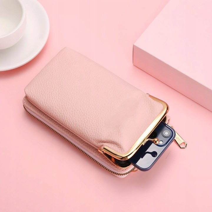 Aceasta geanta de mana pentru telefon este un accesoriu modern si versatil, perfect pentru femeile care isi doresc eleganta, organizare si libertate de miscare. Designul compact, culoarea roz deschis si materialul din piele ecologica fac din acest model o alegere ideala pentru iesiri in oras, plimbari, cumparaturi sau tinute chic de zi cu zi. Fiind gandita ca mini geanta si portofel in acelasi timp, ofera combinatia perfecta intre stil si functionalitate.