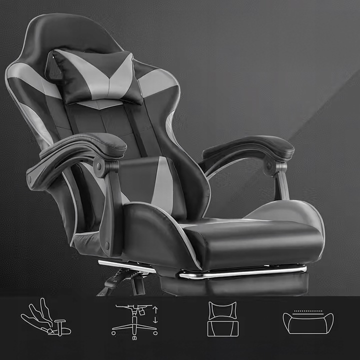 Scaunul se monteaza usor urmand instructiunile incluse in pachet – procesul dureaza aproximativ 30-40 de minute. Odata asamblat, poti regla inaltimea, unghiul spatarului si pozitia suportului pentru picioare in functie de preferinte. Utilizeaza pernele lombare si pentru gat pentru o pozitie ergonomica si confort pe termen lung. Este potrivit pentru gaming, munca de birou, studiu sau relaxare.