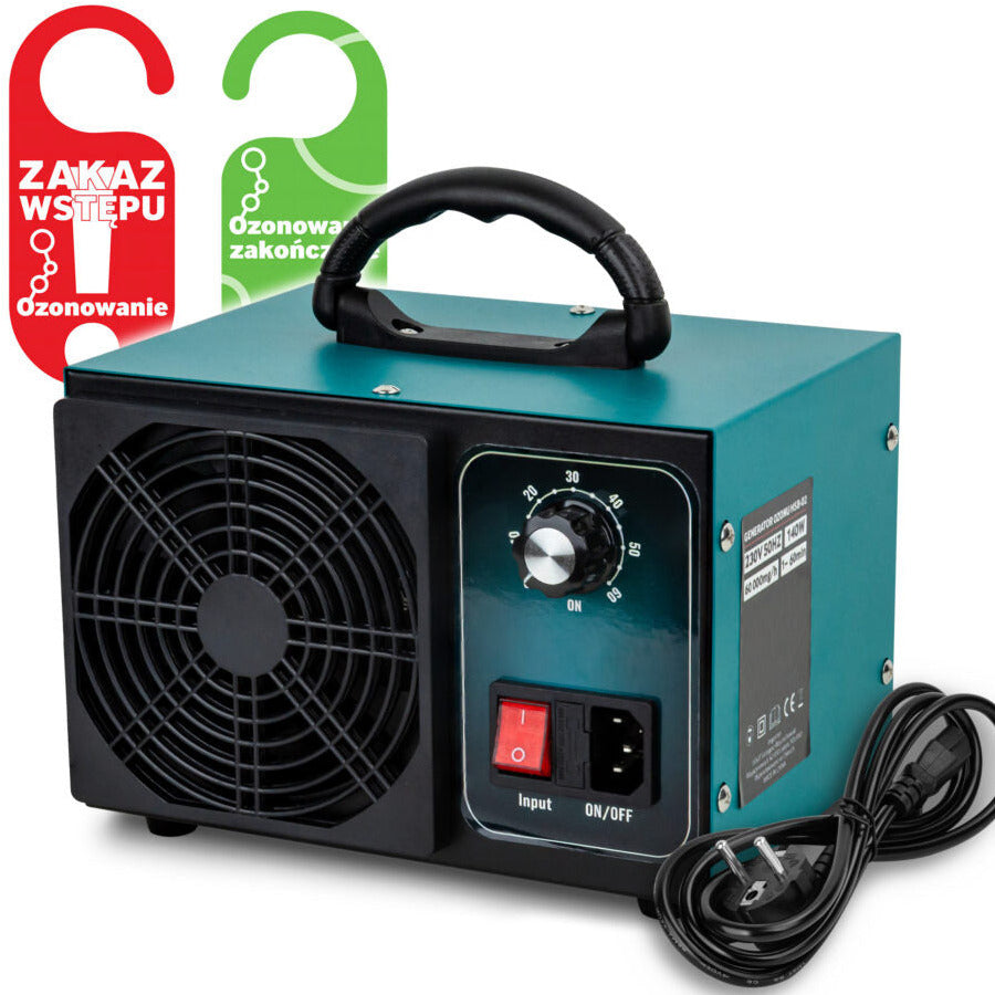 Generator de ozon, Zola, debit de ozon 60.000 mg/h, 140 W, 230V 50Hz, reglarea timpului de lucru 1-60 min, 2 etichete avertismente despre ozonare, negru/albastru
