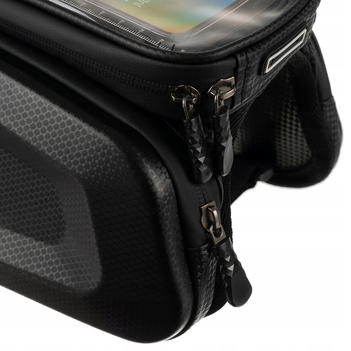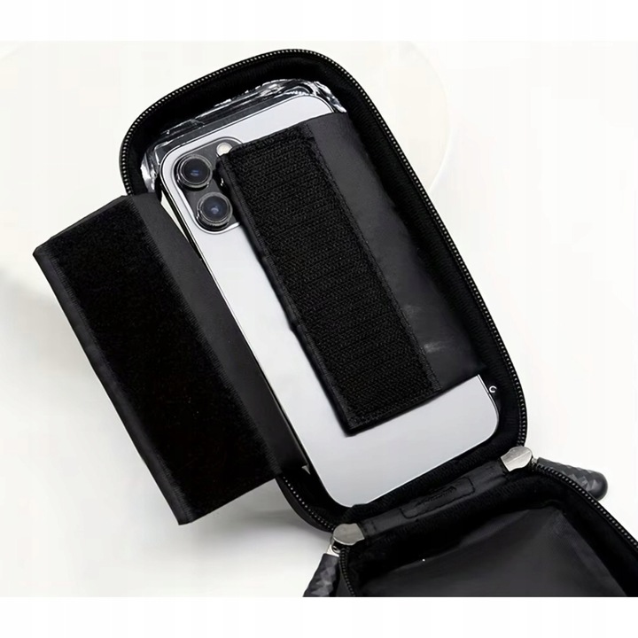 Geanta pentru bicicleta 2 in 1 cu spatiu pentru telefon, Zola, 2 buzunare laterale, fixare velcro, impermeabila, 20 x 19 x 17 cm, neagra