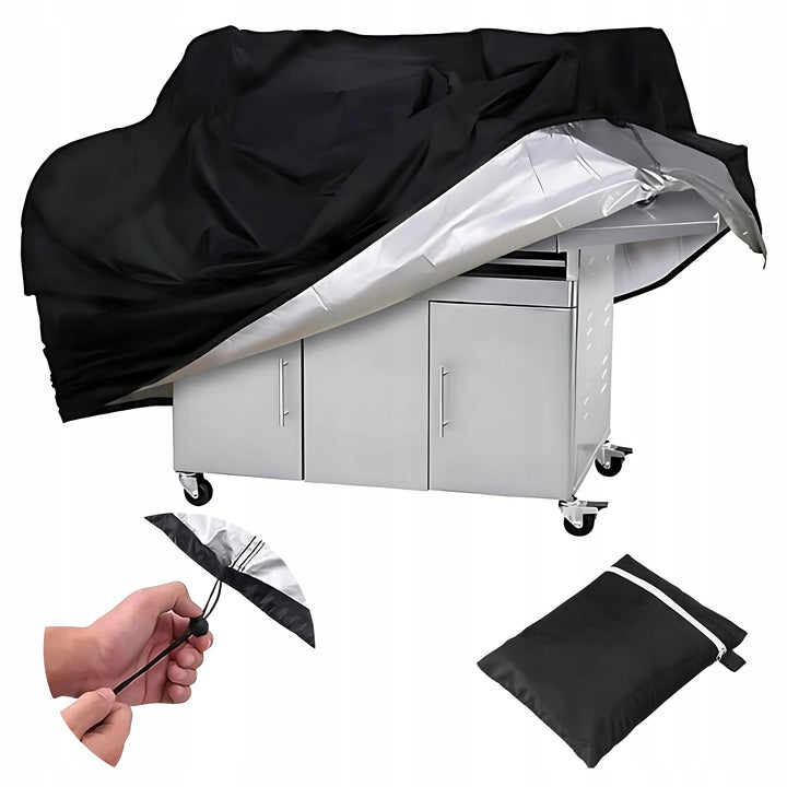 Fabricata din material Oxford 210D de inalta calitate cu invelis PU impermeabil, husa asigura o bariera eficienta impotriva ploii, zapezii, ghetii si razelor UV, prevenind coroziunea si uzura prematura a gratarului. Tesatura densa si tratamentul special anti-UV nu doar ca protejeaza impotriva decolorarii cauzate de expunerea la soare, dar si mentin flexibilitatea materialului chiar si la temperaturi scazute, fara sa se crape sau sa se rigidizeze.