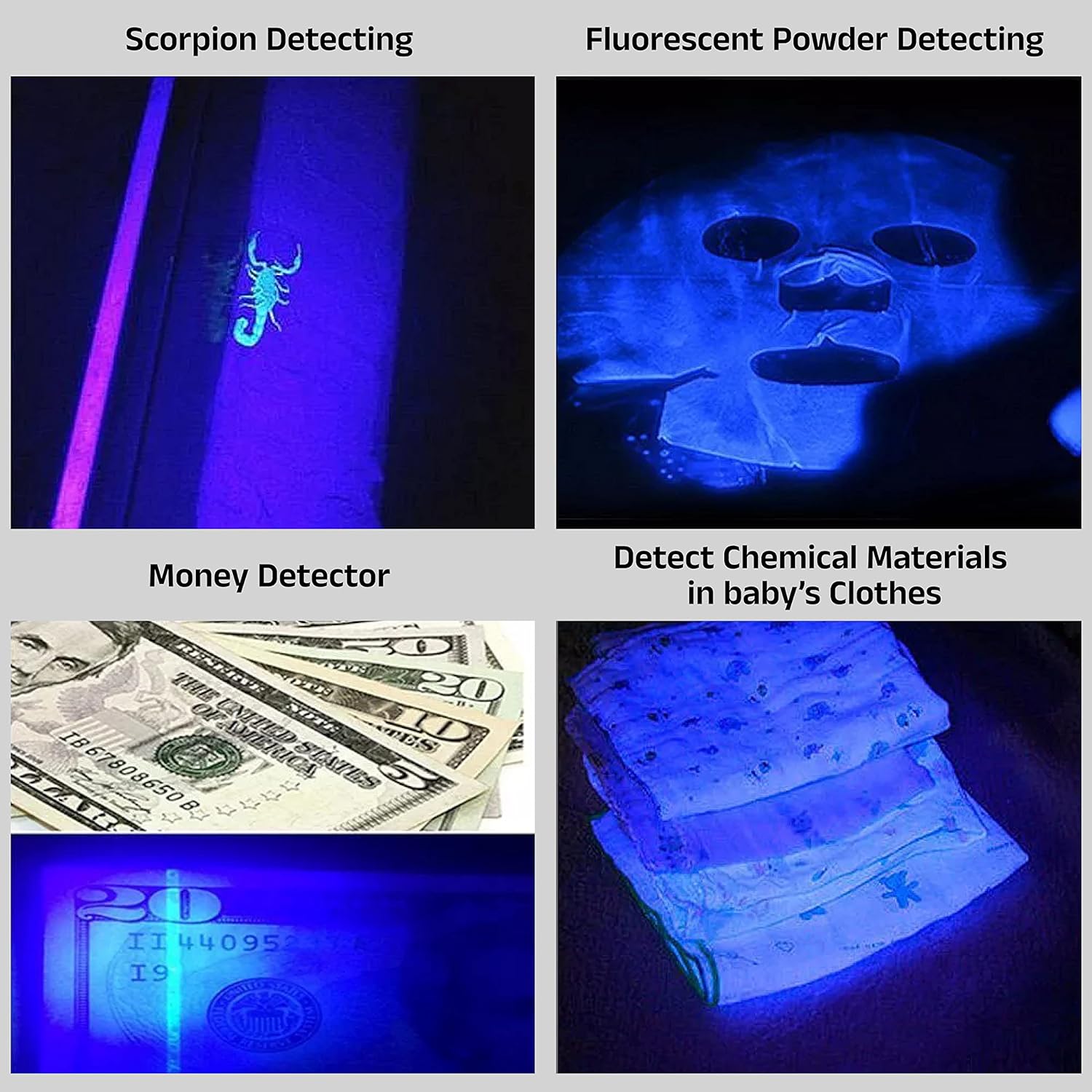 Lumina ultravioleta evidentiaza clar substantele fluorescente, petele invizibile cu ochiul liber, marcajele de siguranta si materialele reactive la UV, oferind rezultate rapide si clare. -