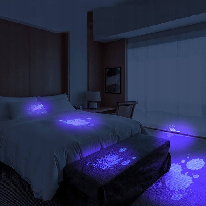 Lumina ultravioleta de 395 nm permite evidentierea rapida a marcajelor de securitate de pe bancnote si documente, a chihlimbarului, a petelor organice sau a scurgerilor marcate cu substante UV. -