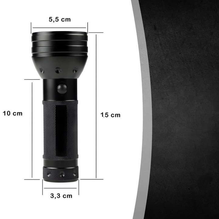 Lanterna tactica UV, Zola, 51 diode LED, 395 nm, alimentare baterii, aliaj de aluminiu, 15 x 55 cm, neagra