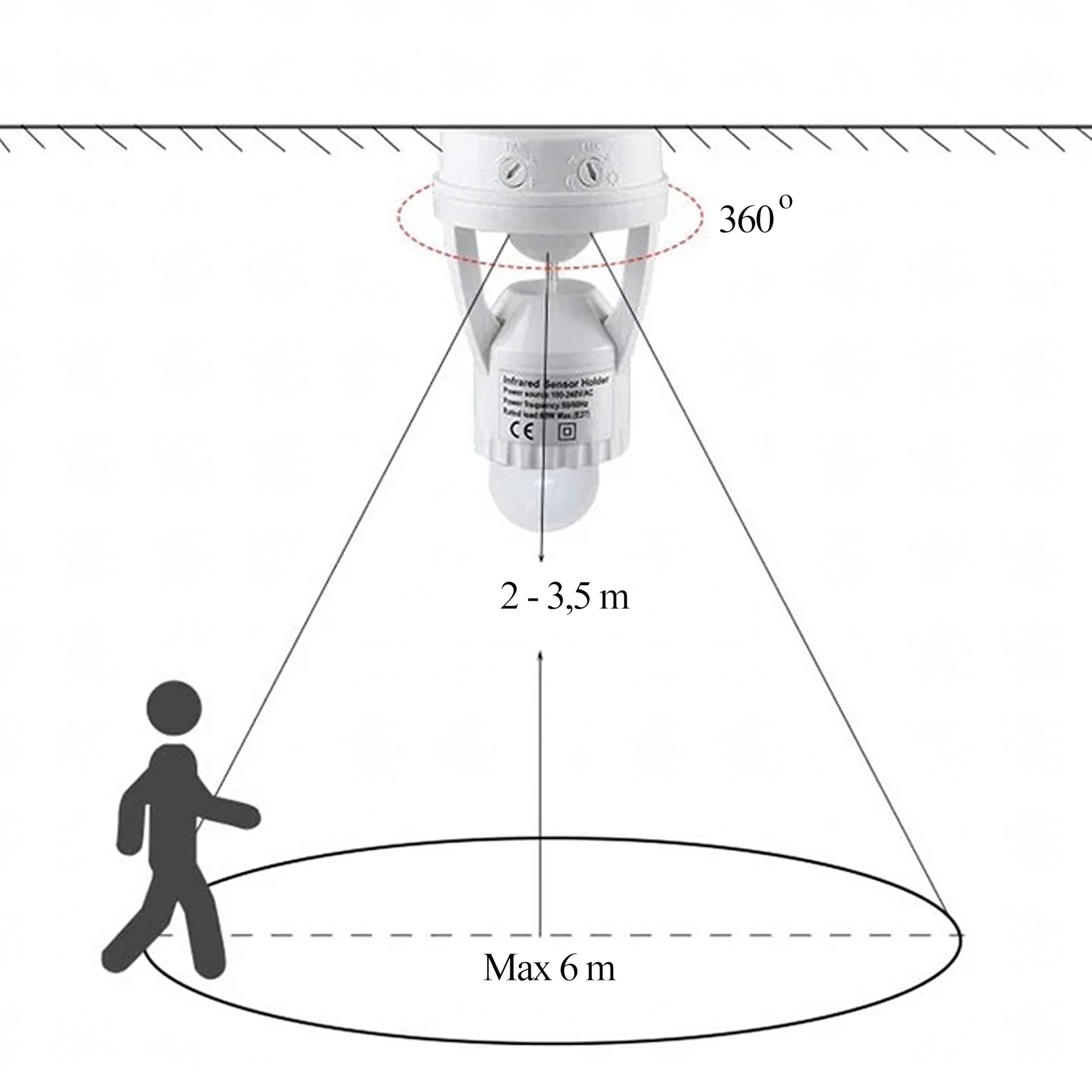 Transforma orice incapere intr-un spațiu modern, inteligent si extrem de practic cu acest soclu pentru bec E27 cu senzor de miscare si senzor crepuscular. Este o solutie ideala pentru cei care isi doresc un sistem de iluminare automat, economic si sigur, fara a instala cabluri suplimentare sau a modifica instalatia electrica existenta. Pur si simplu il infiletezi in dulia standard E27, adaugi un bec compatibil, iar iluminarea se activeaza singura atunci cand este detectata miscare. Datorita unghiului de detectare de 360° si razelor de pana la 6 metri, spatiul este monitorizat complet, iar lumina se aprinde doar atunci cand este necesar.