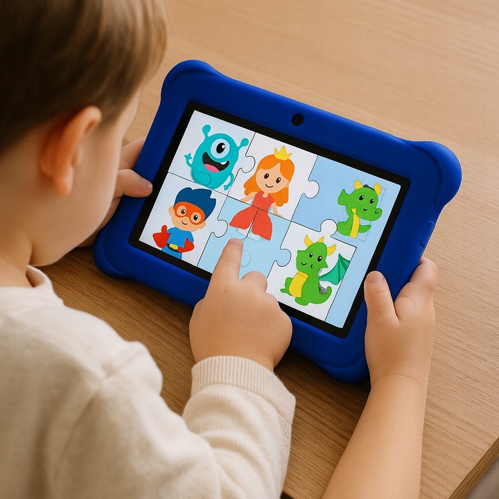 Tableta educativa pentru copii de 7 inch este un dispozitiv creat special pentru a combina invatatul cu distractia, oferind celor mici un mod interactiv si sigur de a descoperi lumea digitala. Cu un design prietenos si o carcasa din cauciuc rezistent, tableta este gandita sa reziste utilizarii zilnice, fiind usor de tinut in mana si protejata impotriva socurilor sau cazaturilor. Este solutia ideala pentru parintii care doresc sa ofere copiilor acces la tehnologie intr-un mod controlat si sigur, dar si un cadou perfect pentru zile de nastere, sarbatori sau orice ocazie speciala.