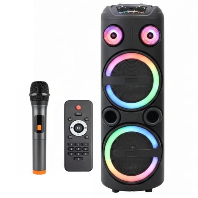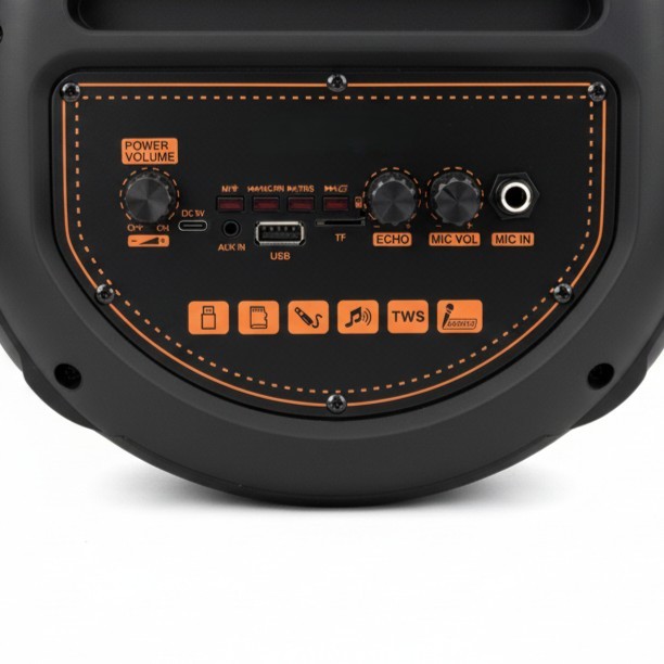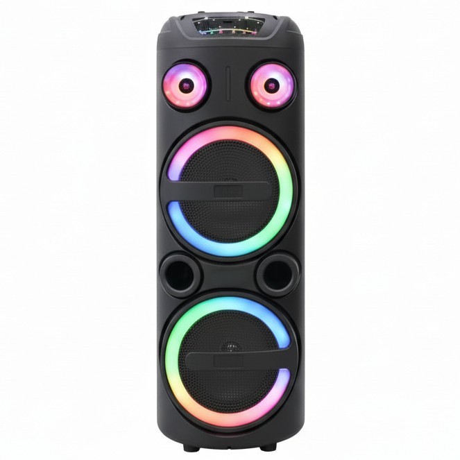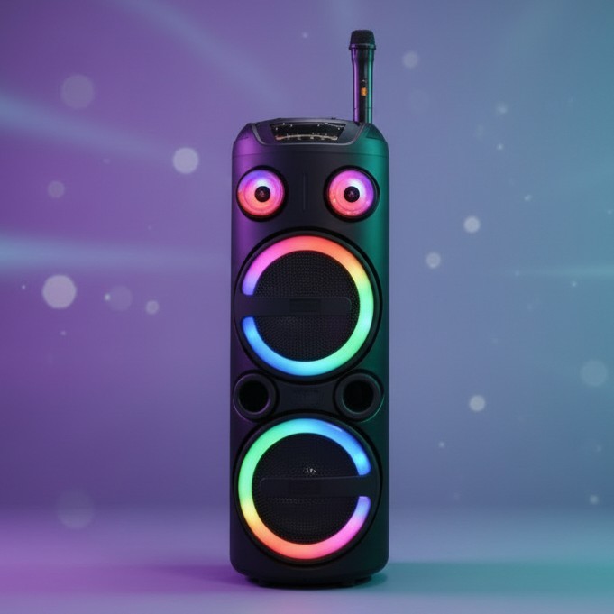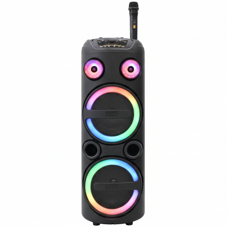 • Iluminare LED RGB integrata – luminile colorate creeaza o atmosfera spectaculoasa si transforma orice petrecere sau eveniment intr-o experienta vizuala si audio completa.