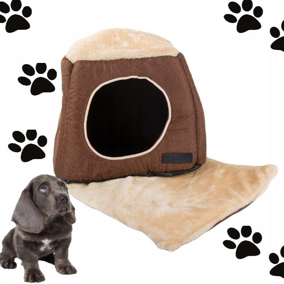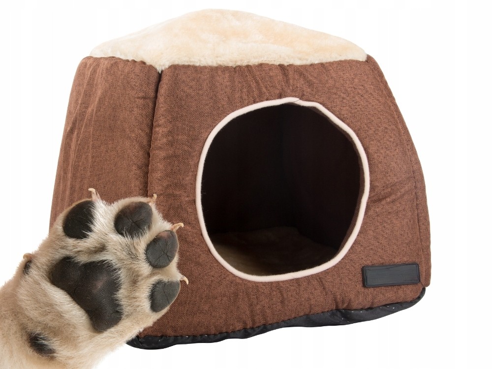 Casuta pentru caini si pisici de talie mica, Zola, baza antiderapanta, 28 x 36 x 33 cm, maro/crem