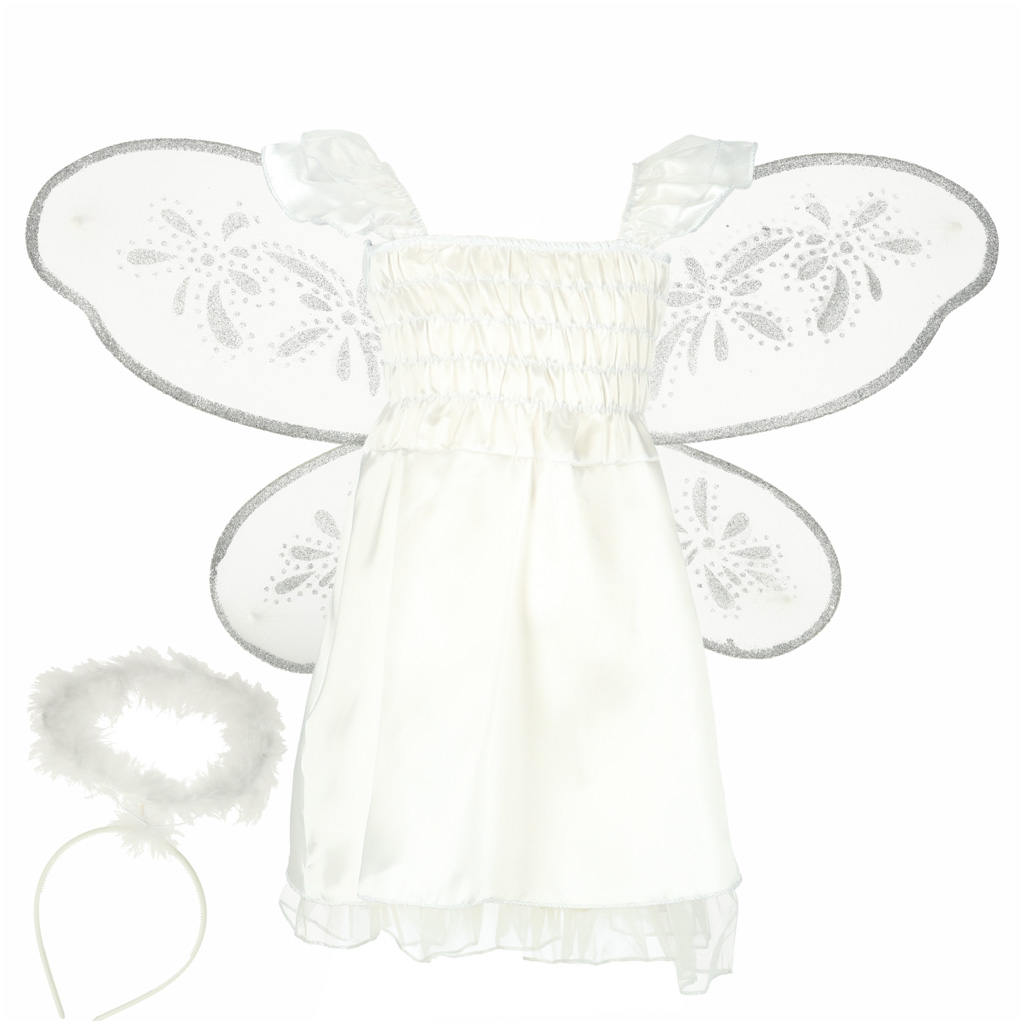 Costum inger pentru fetite 3 piese, Zola, 110–120 cm, 3 piese, rochie, aripi si coronita