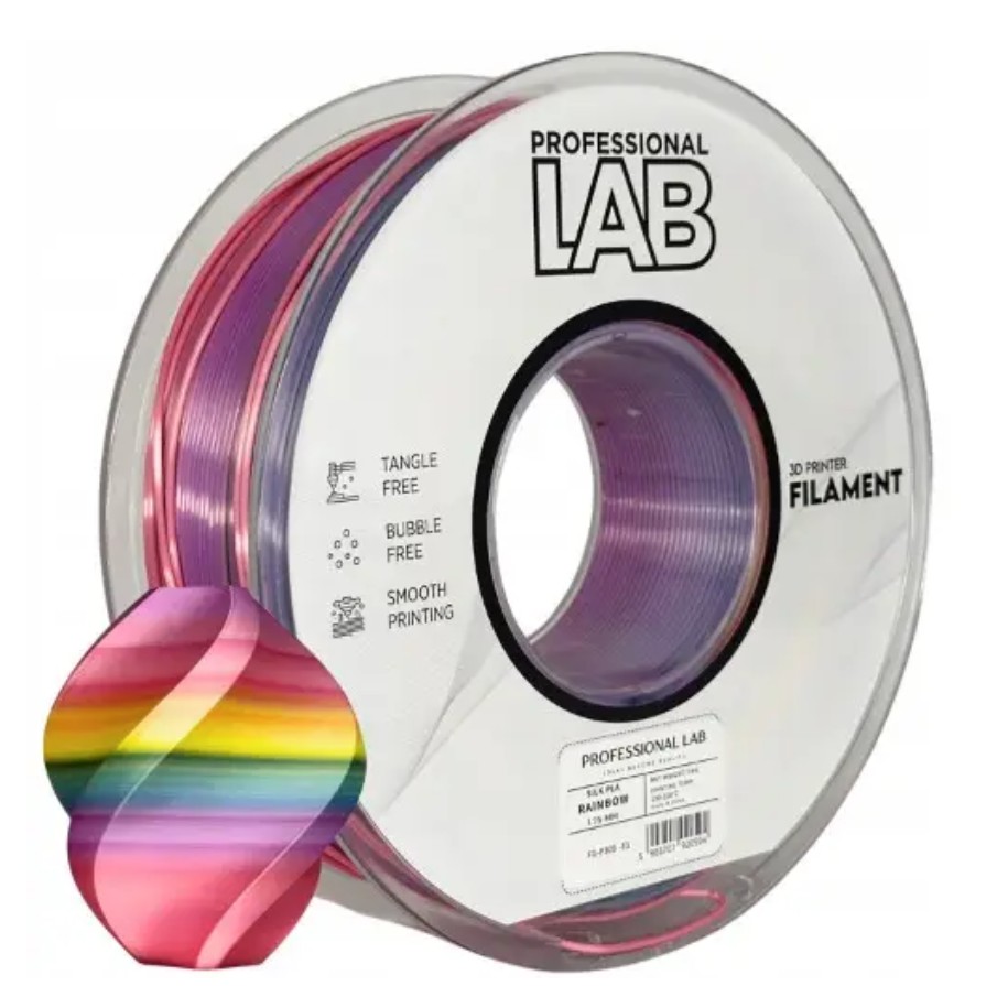 Filament Silk PLA Rainbow pentru imprimanta 3D, Professional LAB, 1 kg, 1.75 mm, curcubeu, roz/ violet / albastru