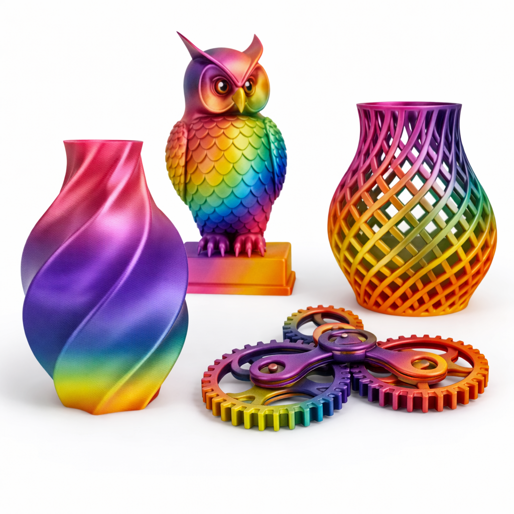 • Efect rainbow cu tranzitie continua intre culori – schimbarea culorilor se face natural pe lungimea filamentului, oferind fiecarui model un aspect diferit si spectaculos