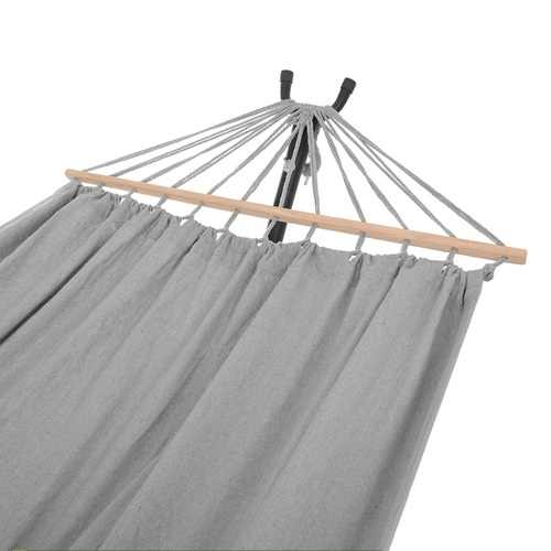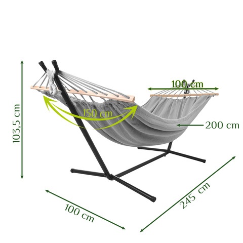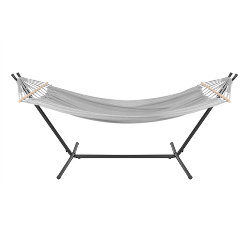 Hamac de gradina dublu XXL, Zola, 250 kg, cu suport metalic, bumbac/poliester, husa depozitare, 200 x 150 cm, gri