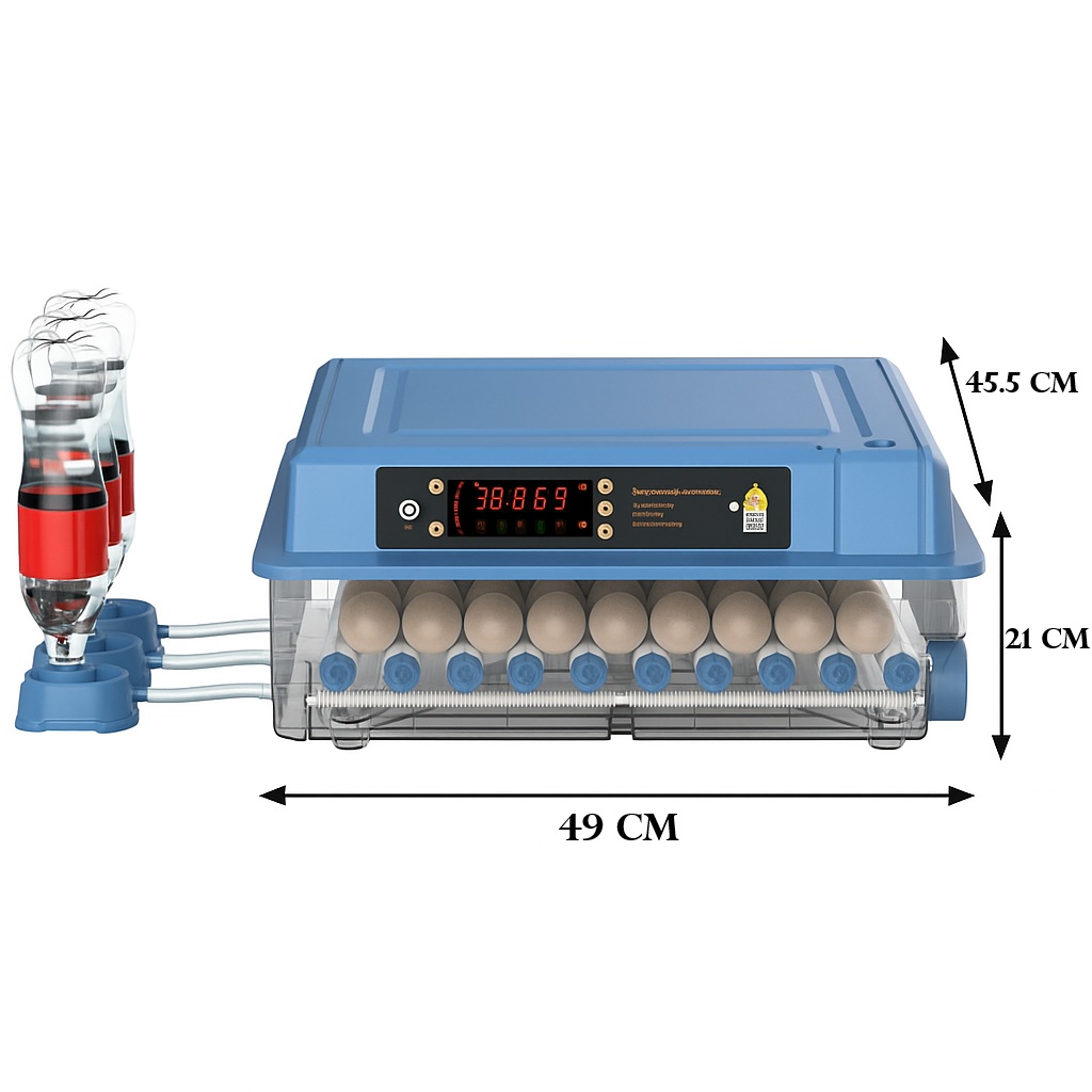 Incubatorul automat pentru 64 de oua este un dispozitiv modern, creat pentru a oferi conditii ideale de eclozare atat pentru pasionatii de cresterea pasarilor, cat si pentru utilizatorii profesionisti. Cu un design compact, dar o capacitate impresionanta de 64 de oua, acest incubator combina eficienta, siguranta si controlul precis al mediului pentru a asigura o incubatie uniforma si un procent ridicat de reusita. Capacul transparent permite monitorizarea permanenta a procesului de incubatie, fara a fi nevoie sa deschideti aparatul, mentinand astfel temperatura si umiditatea optime in interior.