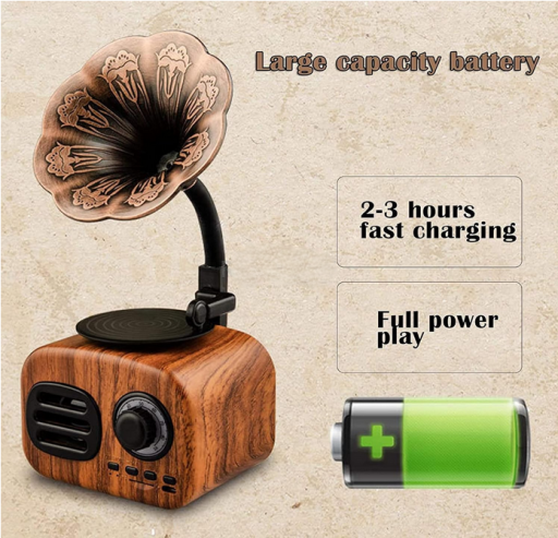 Cu o baterie reincarcabila de 1200 mAh, dispozitivul ofera ore intregi de redare continua, fara a fi nevoie de conectare permanenta la priza. Se incarca in aproximativ 2–3 ore prin cablu inclus si este gata de utilizare atat acasa, cat si in calatorii. Dimensiunile compacte de 21 × 10 × 7 cm si greutatea redusa de numai 0,4 kg il fac usor de transportat si depozitat.
